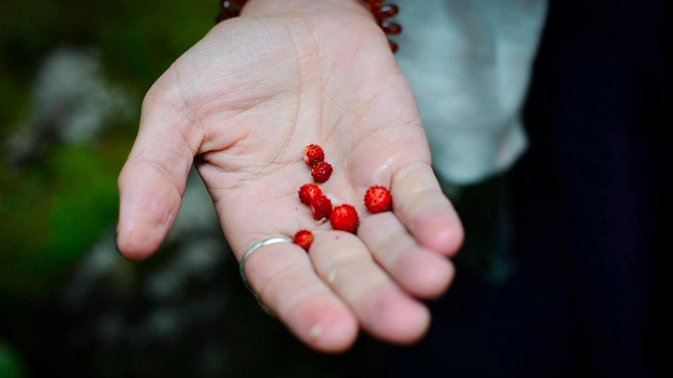Vierwaldstättersee, auf dem ein paar wenige Segelboote dahingleiten. Ich führe ihre Hände an Moos und Farn und zu den wilden Erdbeeren, die hier wachsen.